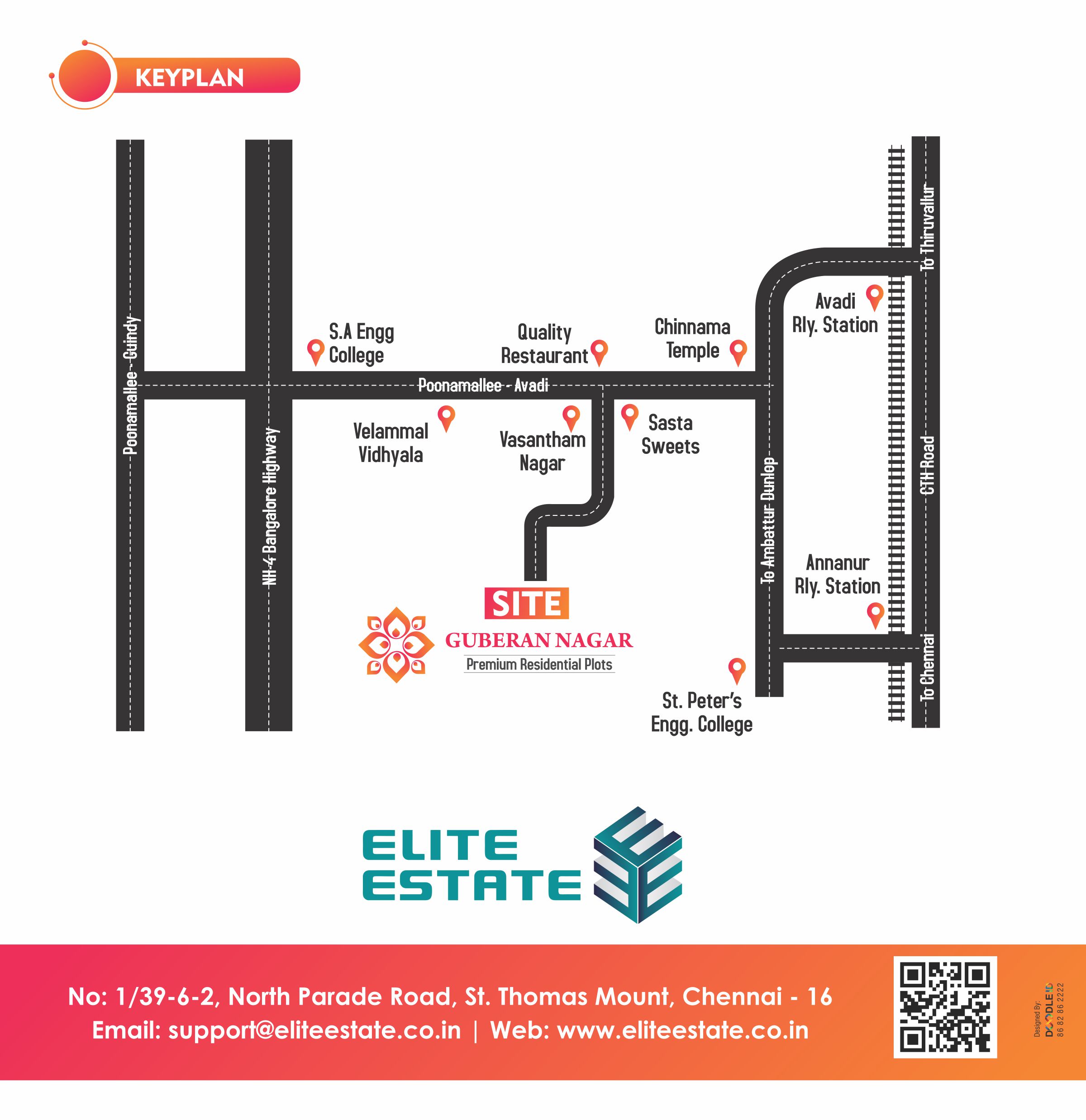 Elite Estate is proudly launching Guberan Nagar, DTCP-approved and RERA-approved at Avadi. We offer residential projects in plots and villas with contemporary architecture and features for a comfortable living environment. Quality is a continuous endeavor that focuses on customer satisfaction. We will strive to make a constant effort to maintain and improve our quality commitment at all times. Guberan Nagar Is A Natural, Serene Location Where the pollution and Craziness Of The Cities Are Never Heard Of. Natural Spring Water Underneath The Surface And Rich Red Soil Cover The Project is the perfect destination for a relaxed lifestyle. With all these features, it is easy to see why Guberan Nagar is a popular choice for a peaceful and tranquil living experience. Guberan Nagar offers beautifully landscaped gardens, a luxurious pool, and a range of other amenities. It also provides a variety of activities. Residents can also enjoy the convenience of being close to local shops. Guberan Nagar provides a peaceful and beautiful environment for our customers to relax and enjoy. We are committed to offering the highest quality of service and amenities to ensure our customers have the best experience possible.
