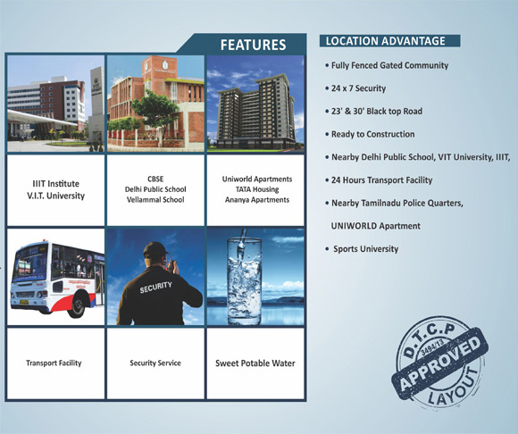 Elite Estate is proudly launching Kaushik Garden, DTCP-approved and RERA-approved at Kandigai. We offer residential projects in plots and villas with contemporary architecture and features for a comfortable living environment. Quality is a continuous endeavor that focuses on customer satisfaction. We will strive to make a constant effort to maintain and improve our quality commitment at all times. Kaushik Garden Is A Natural, Serene Location Where the pollution and Craziness Of The Cities Are Never Heard Of. Natural Spring Water Underneath The Surface And Rich Red Soil Cover The Project is the perfect destination for a relaxed lifestyle. With all these features, it is easy to see why Kaushik Garden is a popular choice for a peaceful and tranquil living experience. Kaushik Garden offers beautifully landscaped gardens, a luxurious pool, and a range of other amenities. It also provides a variety of activities. Residents can also enjoy the convenience of being close to local shops. Kaushik Garden provides a peaceful and beautiful environment for our customers to relax and enjoy. We are committed to offering the highest quality of service and amenities to ensure our customers have the best experience possible.