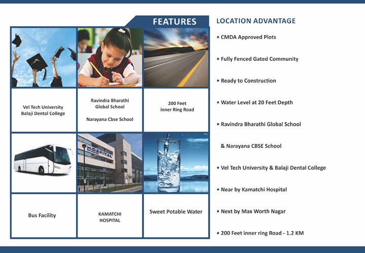 Elite Estate is proudly launching Nandhini Nagar, DTCP-approved and RERA-approved at Kovilambakkam. We offer residential projects in plots and villas with contemporary architecture and features for a comfortable living environment. Quality is a continuous endeavor that focuses on customer satisfaction. We will strive to make a constant effort to maintain and improve our quality commitment at all times. Nandhini Nagar Is A Natural, Serene Location Where the pollution and Craziness Of The Cities Are Never Heard Of. Natural Spring Water Underneath The Surface And Rich Red Soil Cover The Project is the perfect destination for a relaxed lifestyle. With all these features, it is easy to see why Nandhini Nagar is a popular choice for a peaceful and tranquil living experience. Nandhini Nagar offers beautifully landscaped gardens, a luxurious pool, and a range of other amenities. It also provides a variety of activities. Residents can also enjoy the convenience of being close to local shops. Nandhini Nagar provides a peaceful and beautiful environment for our customers to relax and enjoy. We are committed to offering the highest quality of service and amenities to ensure our customers have the best experience possible.