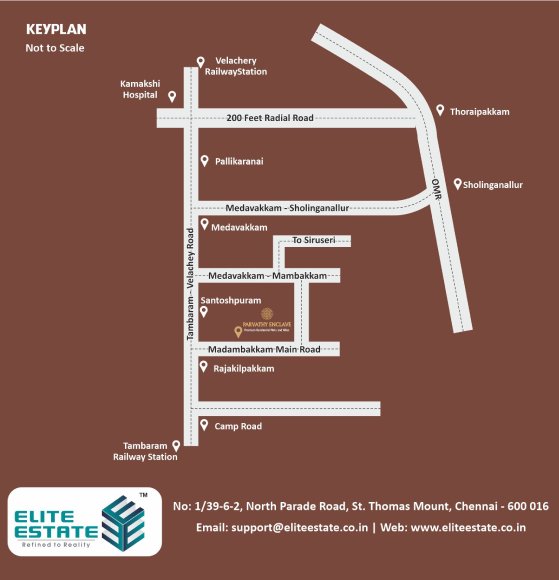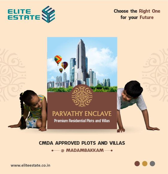 Elite Estate is proudly launching Parvathy Enclave, DTCP-approved and RERA-approved at Madambakkam. We offer residential projects in plots and villas with contemporary architecture and features for a comfortable living environment. Quality is a continuous endeavor that focuses on customer satisfaction. We will strive to make a constant effort to maintain and improve our quality commitment at all times. Parvathy Enclave Is A Natural, Serene Location Where the Pollution and Craziness Of The Cities Are Never Heard Of. Natural Spring Water Underneath The Surface And Rich Red Soil Cover The Project is the perfect destination for a relaxed lifestyle. With all these features, it is easy to see why Parvathy Enclave is a popular choice for a peaceful and tranquil living experience. Parvathy Enclave offers beautifully landscaped gardens, a luxurious pool, and a range of other amenities. It also provides a variety of activities. Residents can also enjoy the convenience of being close to local shops. Parvathy Enclave provides a peaceful and beautiful environment for our customers to relax and enjoy. We are committed to offering the highest quality of service and amenities to ensure our customers have the best experience possible.