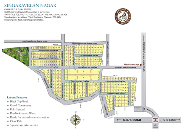 Elite Estate is proudly launching Singaravelan Nagar, DTCP-approved and RERA-approved at Tambaram. We offer residential projects in plots and villas with contemporary architecture and features for a comfortable living environment. Quality is a continuous endeavor that focuses on customer satisfaction. We will strive to make a constant effort to maintain and improve our quality commitment at all times. Singaravelan Nagar Is A Natural, Serene Location Where the pollution and Craziness Of The Cities Are Never Heard Of. Natural Spring Water Underneath The Surface And Rich Red Soil Cover The Project is the perfect destination for a relaxed lifestyle. With all these features, it is easy to see why Singaravelan Nagar is a popular choice for a peaceful and tranquil living experience. Singaravelan Nagar offers beautifully landscaped gardens, a luxurious pool, and a range of other amenities. It also provides a variety of activities. Residents can also enjoy the convenience of being close to local shops. Singaravelan Nagar provides a peaceful and beautiful environment for our customers to relax and enjoy. We are committed to offering the highest quality of service and amenities to ensure our customers have the best experience possible.